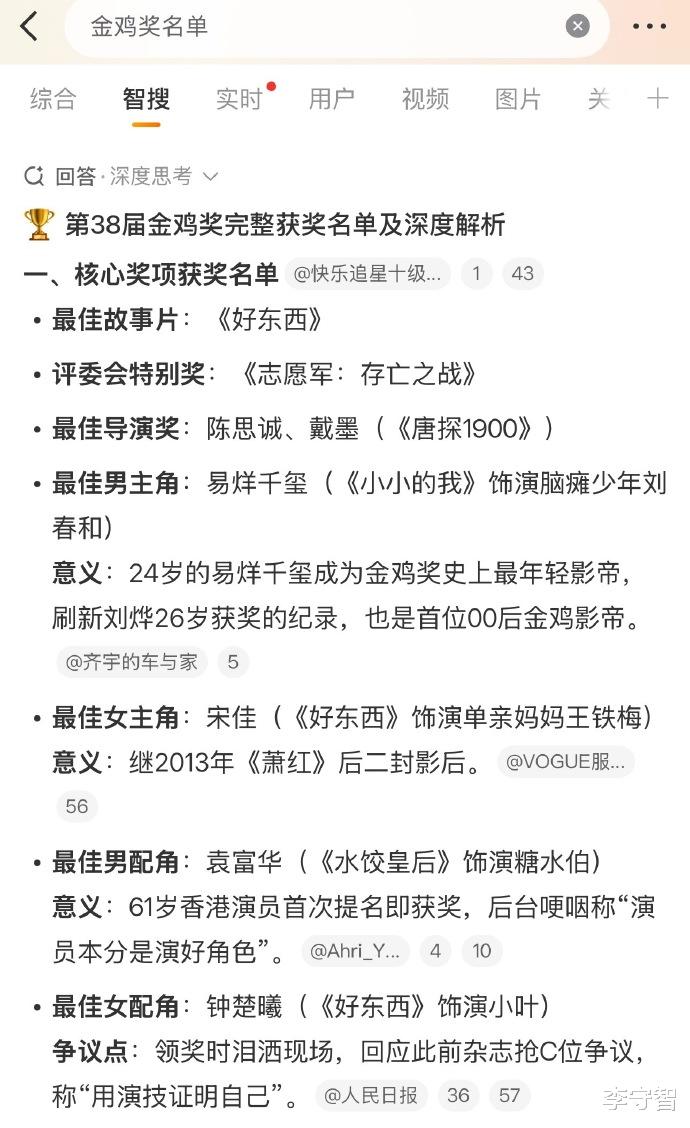 然后《好东西》这部电影成为大赢家,斩获最佳故事片,女主角宋佳和女配角钟楚曦都拿奖也被质疑,钟楚曦遭遇的质疑声音更大。除此之外,陈思诚拿最佳导演奖,也是最离谱的,只是很多人不想关注他而已。
