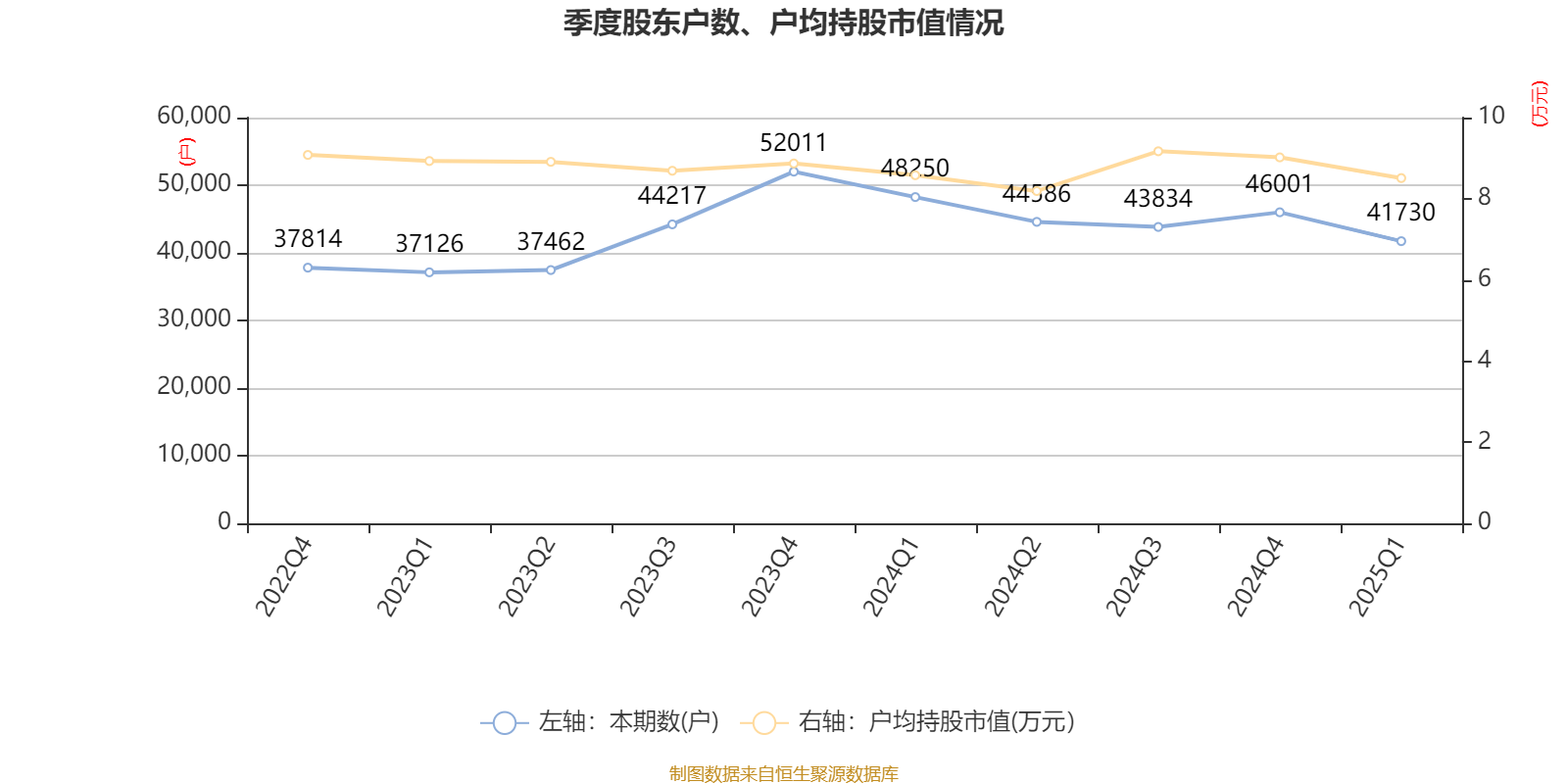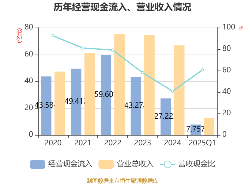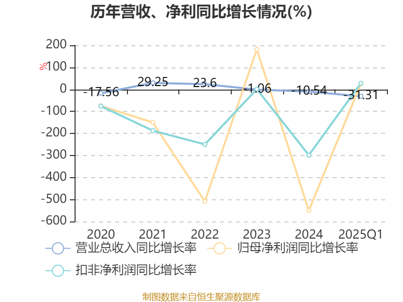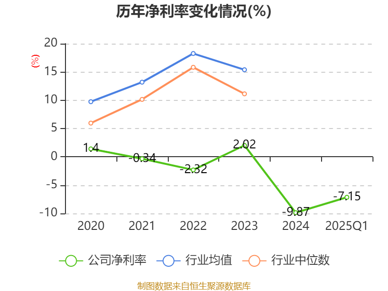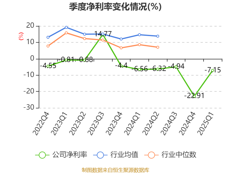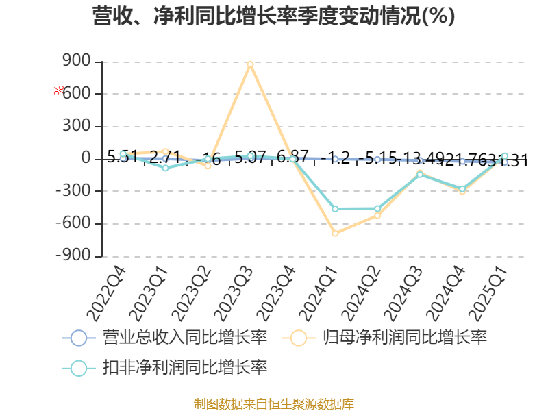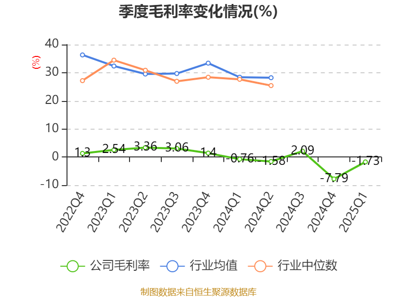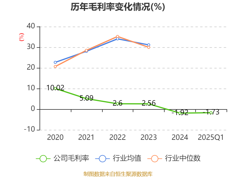 盈利能力方面, 2025年一季度公司加权平均净资产收益率为-3.07%,同比上升0.69个百分点。公司2025年第一季度投入资本回报率为-1.44%,较上年同期下降0.04个百分点。