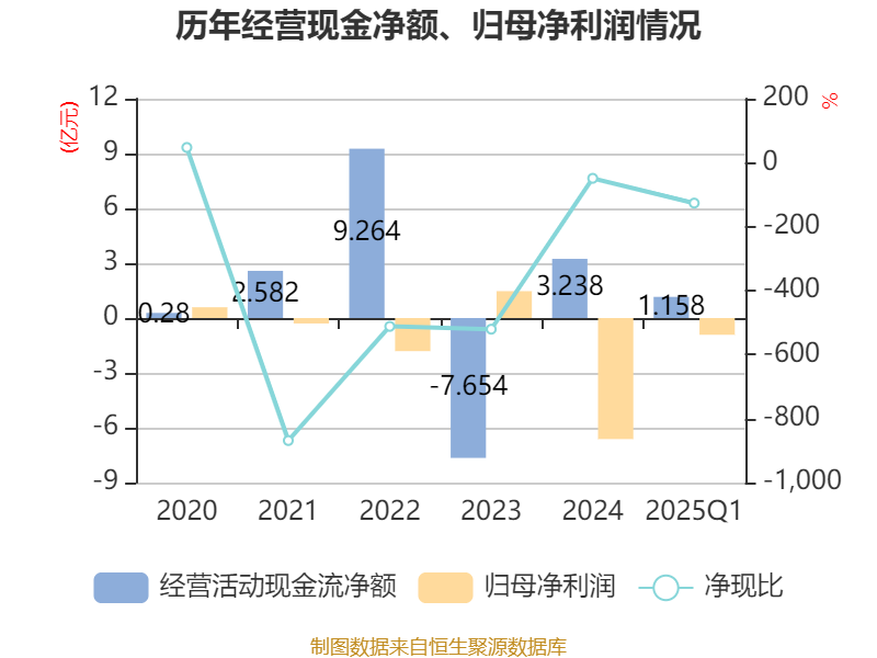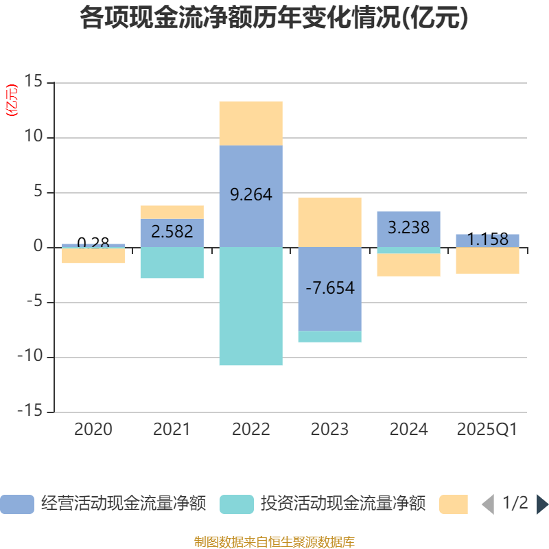 截至2025年一季度末,公司经营活动现金流净额为1.16亿元,同比增长14.24%;筹资活动现金流净额-2.42亿元信钰证券 ,同比减少2.54亿元;投资活动现金流净额-87.93万元,上年同期为-2255.23万元。