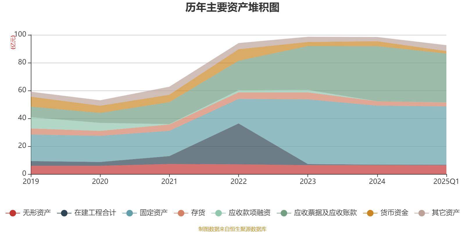 资产重大变化方面,截至2025年一季度末,公司应收票据及应收账款较上年末减少11.19%,占公司总资产比重下降2.24个百分点;固定资产较上年末减少1.1%,占公司总资产比重上升2.22个百分点;货币资金较上年末减少49.73%,占公司总资产比重下降1.66个百分点;预付款项较上年末增加772.93%,占公司总资产比重上升1.52个百分点。