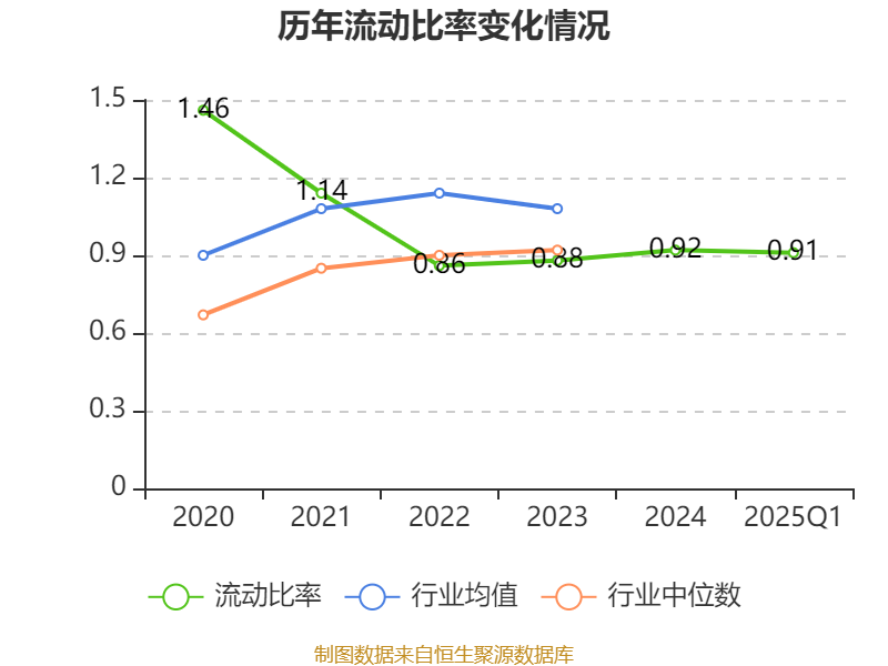 2025年第一季度,公司流动比率为0.91,速动比率为0.85。