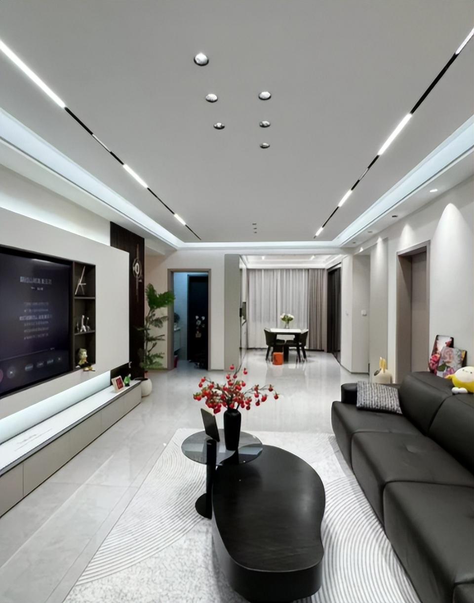 设计师说无主灯高级感十足,但实际效果……压层高、反光晃眼,孩子写作业都难受✏️。我朋友家装了无主灯,结果晚上老公抱怨:“家里像KTV一样刺眼!”建议:多装几个主灯,简单大方,方便维修。