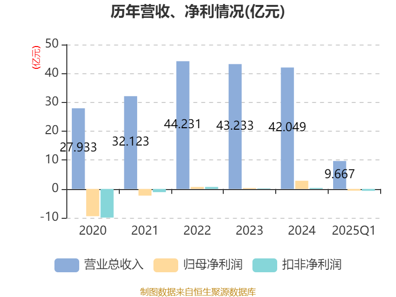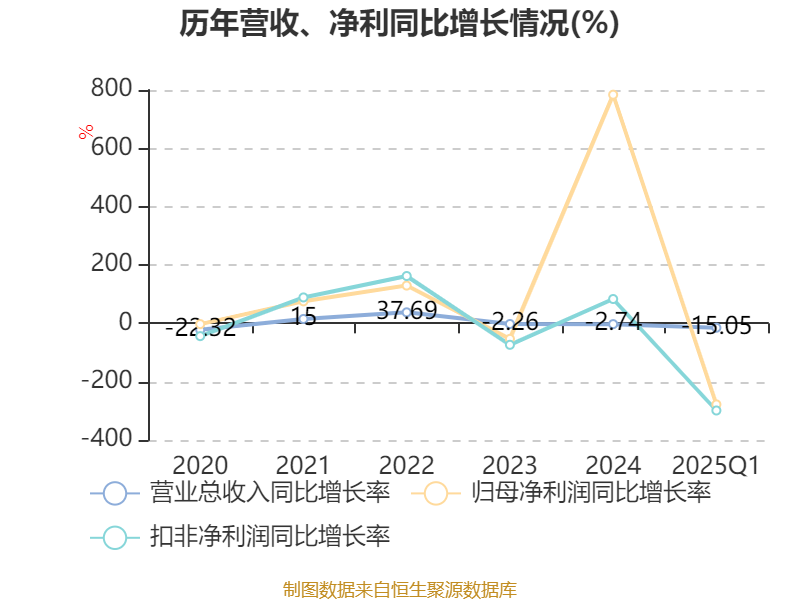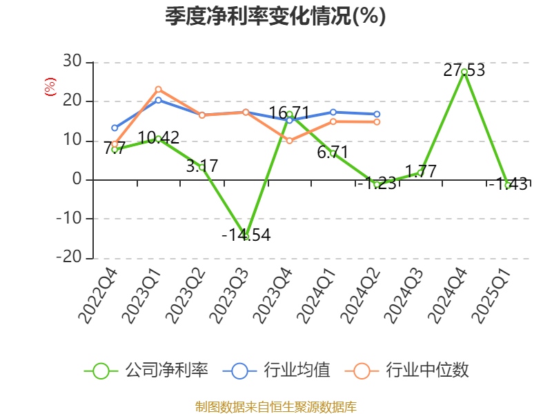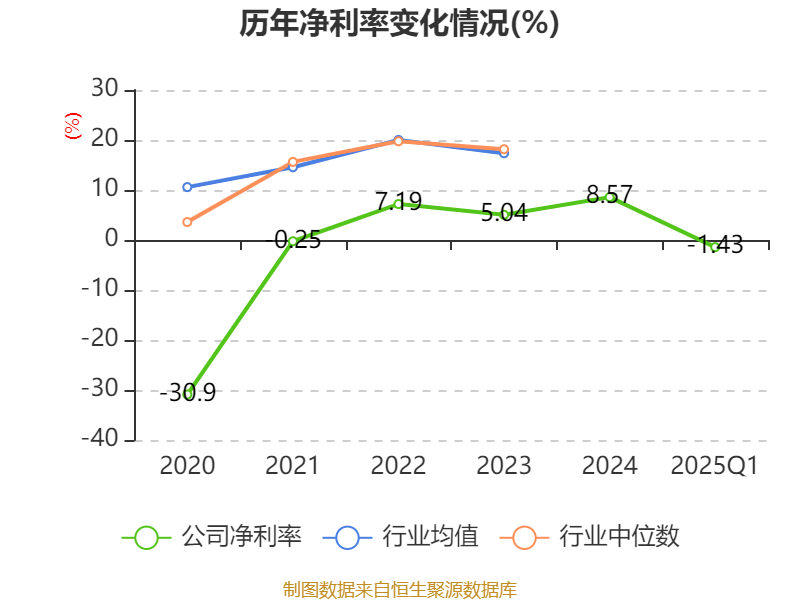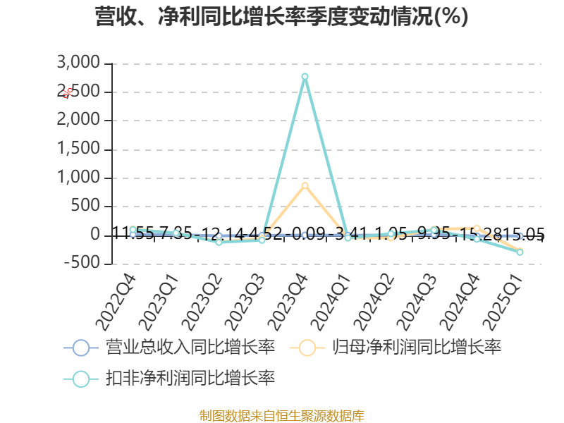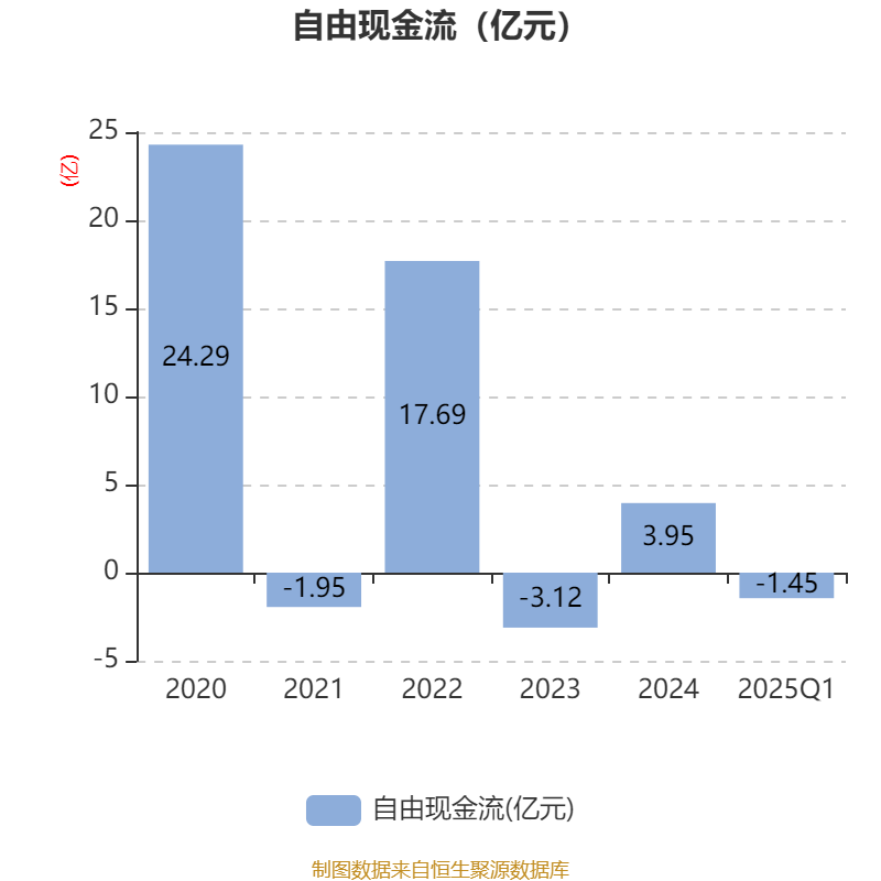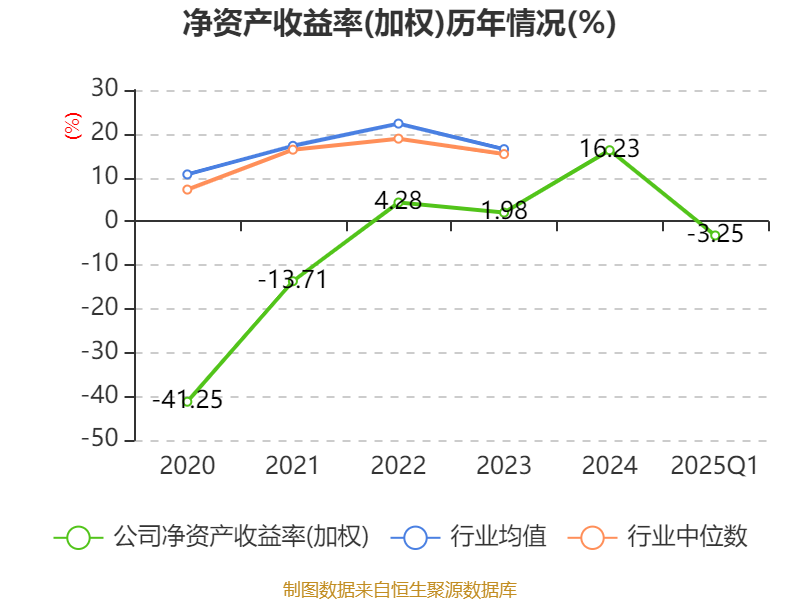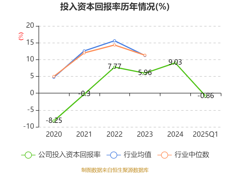 盈利能力方面, 2025年一季度公司加权平均净资产收益率为-3.25%,同比下降5.32个百分点。公司2025年第一季度投入资本回报率为-0.86%,较上年同期下降2.97个百分点。