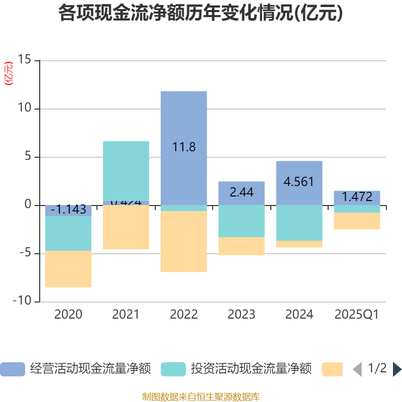 截至2025年一季度末永旺配资端,公司经营活动现金流净额为1.47亿元,同比增长2.21%;筹资活动现金流净额-1.72亿元,同比减少8214.65万元;投资活动现金流净额-8084.99万元,上年同期为-6050.66万元。