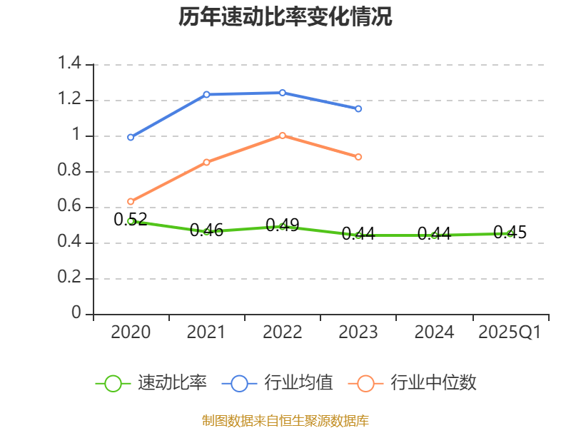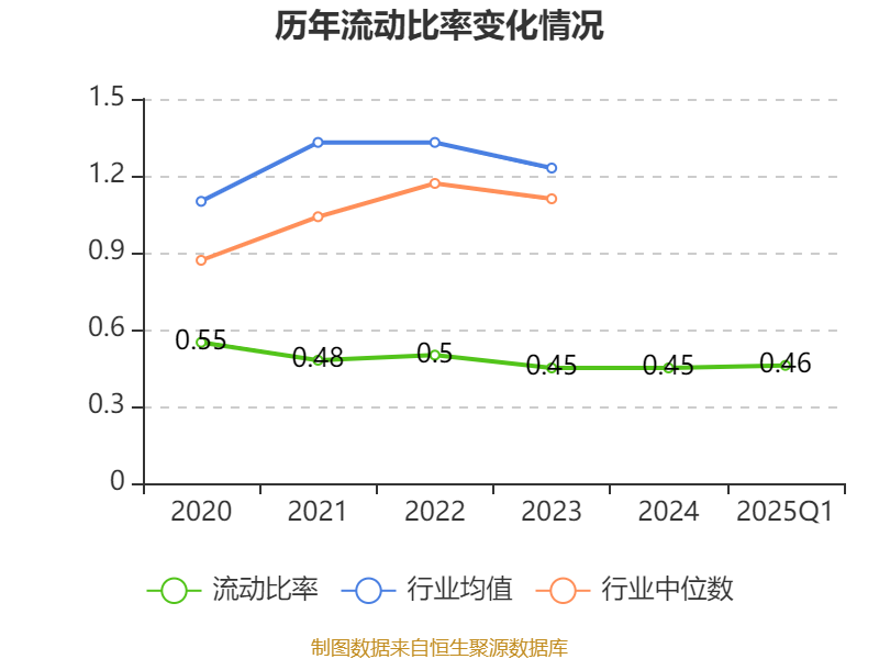 2025年第一季度,公司流动比率为0.46,速动比率为0.45。
