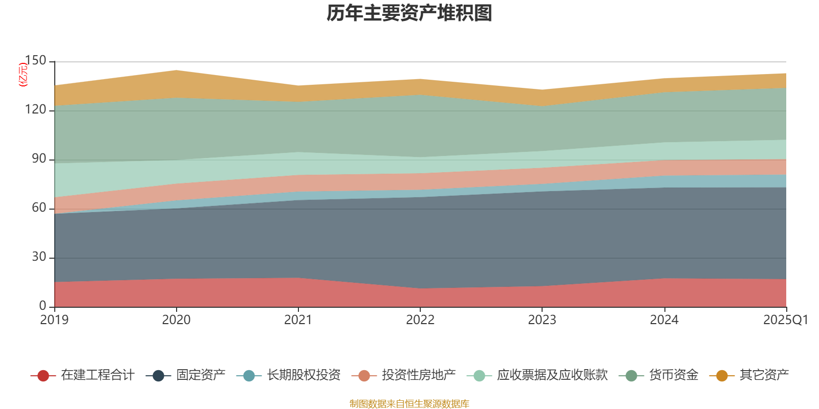 资产重大变化方面,截至2025年一季度末,公司在建工程合计较上年末减少2.74%,占公司总资产比重下降0.59个百分点;应收票据及应收账款较上年末增加8.82%,占公司总资产比重上升0.51个百分点;固定资产较上年末增加1.19%,占公司总资产比重下降0.37个百分点;货币资金较上年末增加3.53%,占公司总资产比重上升0.3个百分点。